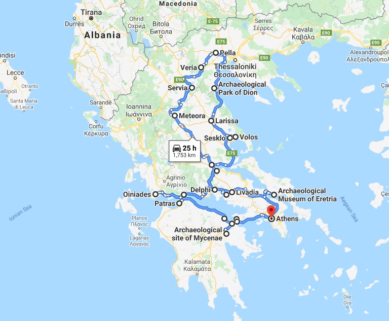day 1: Valtos archaeological site; Amphiareion of Oropos archaeological site; accommodation in Eretria Tour finishes in: Athens, Greece Planned distance of this tour: 1753 km. Availability of this tourPlease check below for the availability of this small group tour for a specific month and year. In addition, for this tour, a 60 days cut-off period is in effect. Of course, you are always welcome to contact us with questions about availability. Check availability for specific period: