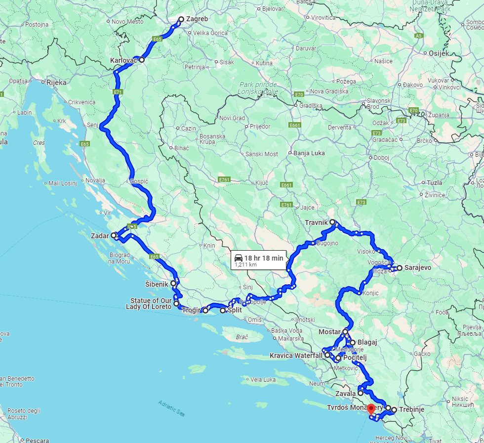 Tour summaryCroatia + Bosnia all seasons discovery 9 days tour from Zagreb to Dubrovnik. Monterrasol Travel small group tour by car. UNESCO towns, Venetian fortresses, medieval towns, and scenic roads. This page describes details of the multi-day small group car tour #544 offered by Monterrasol Travel. We, Monterrasol Travel, are an independent tour operator specialized in cultural and destination tourism. This sightseeing tour has been developed by Monterrasol Travel for small groups travelers based on our own experiences and belongs to the group of car tours with pre-designed itineraries. If you like this tour but you would like to change something, please do not hesitate to contact us and mention the ID number of this tour: #544. The custom itinerary will cost you nothing, it's free from our side. The tour will start in Zagreb (Croatia) and tour finishes in Dubrovnik (Croatia), and will take 9 days (8 nights). During this tour you will visit Dubovac, Zadar, Šibenik, Loreto, Split, Trogir, Travnik, Sarajevo, Konjic, Mostar, Blagaj, Kravica, Međugorje, Počitelj, Radimlja, Vjetrenica, Zavala, Trebinje, Tvrdoš located in Croatia, Bosnia and Herzegovina. Overall, with this tour you will visit 8 UNESCO World Heritage sites and 3 sites from the UNESCO Tentative List (sites that were submitted to the World Heritage Committee, and are awaiting to consider for nomination, and therefore suitable for inscription on the World Heritage List). Additional informationWe will pick you up at any hotel or place, in or around Zagreb. Drop off is possible at any hotel or place, in or around Dubrovnik. We, at Monterrasol Travel, practice the Slow Tourism philosophy. That means that we work our tours at a pace that allows to our clients have a more authentic experience and a true exploring of each destination that features in our itineraries. The default tour price includes rooms in 3-star hotels, which are usually not near historical centers with pedestrian streets. If you would like better accommodation in terms of location and quality level, please contact us. This small group tour is available for solo travelers as well. Please contact us for details. We provide for this tour a special discount for pensioners (seniors citizens). We recommend you consider traveling off-season. Advantages of traveling off-season. Photo galleryPhoto gallery of attractions involved in this tour. Tour descriptionWe welcome you to take with us our 9 days discovery tour passing across 2 Balkans countries: Croatia and Bosnia-Herzegovina. The tour running all seasons and allow you to discover most of important attraction in both countries. We will start our tour with visiting small but cute Dubovac fortress. The very first Dalmatian town we going to visit is Zadar, there we will walk its historical center, see fortified walls, churches and cathedral, quite unique creation called Sea Organ, and learn why Zadar was an important Venetian town. In Sibenik, another one Venetian town, we will explore fortress overlooking whole town, see famous cathedral (UNESCO World Heritage site), and walk streets of historical center. On the way to Split, we will enjoy amazing view of coastal line from the cliff with the monument of Black Madonna. Our next Dalmatian town is Split, known for Diocletian's palace built as a residence of the Roman emperor Diocletian at the end of the third century AD, and today forms the important part of the of Split. We will walk streets of historical center and see beautiful cathedral with paintings and sculptures. We will visit another one Venetian town, Trogir (UNESCO World Heritage site), to see historical center full of narrow cobblestoned streets, see gorgeous cathedral with beautiful paintings and sculptures, and town's harbor and small fortress. The same day we will cross the border and come to Bosnia-Herzegovina. Here, we will take a scenic road toward Ottoman fortress Travnik and will come to see the capital Sarajevo. In Sarajevo, we will explore the historical center and learn why this town have so many unique characteristics. Near Sarajevo we will visit an important place for all Sarajevo residents, so called Tunnel of Hope, saved many lived during the siege. After we will take a road to Mostar, and on the way in will see beautiful bring in town Konjic. This day we will finish in Mostar (UNESCO World Heritage site), exploring its historical center and walk over famous Mostar Old Bridge. Next what we need to see are few places not so far from Mostar. We will see historical town Blagaj with dervish monastery (tekija) built around 1520 over river that coming from a cave, after that we will have a refreshing walk in Kravica, a green area with cascade of waterfalls, and finish this day with visiting pilgrimage center Medjugorje. After Mostar, we will come to explore historical town Pocitelj, with narrow streets and old Ottoman fort with great panoramic view. Next destinations for us will be an archaeological site Radimlja with carved gravestones (UNESCO World Heritage Site), small Zavala monastery partially located in cave, and Vjetrenica cave (recently nominated as UNESCO World Heritage site). Our tour will finish in Trebinje, where we will visit nearby located famous Tvrdos Orthodox monastery and taste real Herzegovina white, rose and red wines from its own wine cellar, admire panoramic view of Trebinje from beautiful church overlooking the town from a hill, and enjoy small walk tour in Trebinje, known for its river with crystal clear water, beautiful Ottoman bridge, and cute old town. Border crossing for this tripThis route require border crossing. You must have valid travel document with you. Please check with your embassy which documents are requested for border crossing to Bosnia and Herzegovina. Money and paymentsIn each country of your trip you can use main credit and debit cards. You can use ATM to withdrawal cash or pay at purchase point with card. More information on currencies, payments, and use