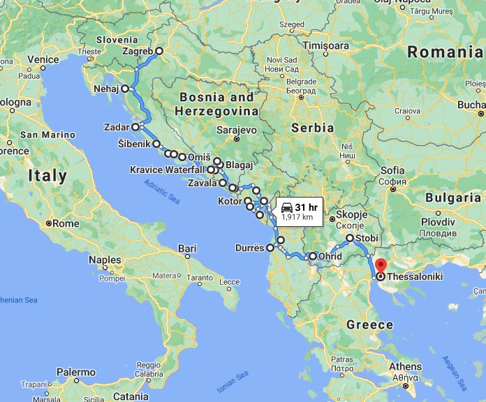 Tour summaryDiscover Croatia Bosnia Montenegro Macedonia Greece in 17 days tour. Monterrasol Travel small group car tour. Balkans roadtrip from Zagreb to Thessaloniki via UNESCO sites, old towns, monasteries and fortresses. This page describes details of the multi-day small group car tour #623 offered by Monterrasol Travel. We, Monterrasol Travel, are an independent tour operator specialized in cultural and destination tourism. This sightseeing tour has been developed by Monterrasol Travel for small groups travelers based on our own experiences and belongs to the group of car tours with pre-designed itineraries. If you like this tour but you would like to change something, please do not hesitate to contact us and mention the ID number of this tour: #623. The custom itinerary will cost you nothing, it's free from our side. The tour will start in Zagreb (Croatia) and tour finishes in Thessaloniki (Greece), and will take 17 days (16 nights). During this tour you will visit Dubovac, Nehaj, Zadar, Šibenik, Trogir, Split, Omiš, Mostar, Kravica, Počitelj, Blagaj, Radimlja, Zavala, Tvrdoš, Trebinje, Ostrog, Budva, Kotor, Stari Bar, Dajbabe, Podgorica, Lezhë, Krujë, Preza, Durrës, Elbasan, Ohrid, Stobi located in Croatia, Bosnia and Herzegovina, Montenegro, Albania, North Macedonia. Overall, with this tour you will visit 10 UNESCO World Heritage sites and 3 sites from the UNESCO Tentative List (sites that were submitted to the World Heritage Committee, and are awaiting to consider for nomination, and therefore suitable for inscription on the World Heritage List). Additional informationWe will pick you up at any hotel or place, in or around Zagreb. Drop off is possible at any hotel or place, in or around Thessaloniki. We, at Monterrasol Travel, practice the Slow Tourism philosophy. That means that we work our tours at a pace that allows to our clients have a more authentic experience and a true exploring of each destination that features in our itineraries. The default tour price includes rooms in 3-star hotels, which are usually not near historical centers with pedestrian streets. If you would like better accommodation in terms of location and quality level, please contact us. This small group tour is available for solo travelers as well. Please contact us for details. We provide for this tour a special discount for pensioners (seniors citizens). We recommend you consider traveling off-season. Advantages of traveling off-season. Photo galleryPhoto gallery of attractions involved in this tour. Tour descriptionThis 17 days Balkans discovery tour will open for you 4 countries: Croatia, Bosnia-Herzegovina, Montenegro and Macedonia. Together with mentioned countries, you will briefly meet Albania and can spend great time in beautiful coastal city Thessaloniki in Greece. With this tour we will pass over Adriatic coast and Dalmatian Riviera of Croatia, wonderful hilly nature of Bosnia-Herzegovina, coastal venetian towns of Montenegro, unexpected panoramas of Albania, and visit roman sites of Macedonia. In all 4 countries we will visit most of must-see places. We will walk in medieval and venetian towns in Croatia, Bosnia-Herzegovina and Montenegro; will see famous Orthodox monasteries in Bosnia-Herzegovina and Montenegro; ancient roman settlement in Macedonia; fortified towns in Croatia, Bosnia-Herzegovina and Montenegro; archaeological places in Bosnia-Herzegovina and Macedonia; medieval fortresses of Croatia, Bosnia-Herzegovina and Montenegro; UNESCO sites in Croatia, Bosnia-Herzegovina, Macedonia, and Montenegro. Border crossing for this tripThis route require border crossing. You must have valid travel document with you. Please check with your embassy which documents are requested for border crossing to Bosnia and Herzegovina, Montenegro, Albania, North Macedonia. Money and paymentsIn each country of your trip you can use main credit and debit cards. You can use ATM to withdrawal cash or pay at purchase point with card. More information on currencies, payments, and use cards you can read on this our page: On the trip: currencies, payments, card use. Last reviewed: 11 February 2022 Tour itineraryTour starts in: Zagreb, Croatia day 1: travel to Dubovac, visit Dubovac fortress, travel to Nehaj to see Nehaj fortress, travel to Zadar to see Zadar historical center, for the rest of the day enjoy free time in Zadar; accommodation in Zadar Tour finishes in: Thessaloniki, Greece Planned distance of this tour: 1917 km. What is a good itinerary for a multi-day tourHow to understand if this itinerary is good for you? Read our advice: what is a good itinerary for a multi-day tour. If you like this small group tour and itinerary but you would like to change something, please do not hesitate to contact us and mention the ID number of this tour: #623. We do not charge for development a custom car tour itinerary, it will cost you nothing. We will be glad to discuss with you the details of your future trip and plan it following your ideas and wishes. Visited places during the tourOur tour will pass several towns and places along the route. Each town and place has something to offer from a tourist's point of view. We will stop in each place and explore its attractions. The exact attractions for each place or town can be seen in the tour's itinerary. Here is the list of places visited during this tour, in the order they appear in the itinerary. Dubovac, CroatiaKnown for castle, museum, viewpoint Perched on a wooded hill above Karlovac, Dubovac Castle, former feudal stronghold, is a medieval gem blending history with panoramic views. Its strategic position and preserved architecture make it a key cultural landmark. Visitors explore its towers, museum, and serene surroundings, stepping into Croatia's storied past. Nehaj, CroatiaKnown for fortress, museum, viewpoint Nehaj Fortress, completed in 1558, incorporated defensive innovations of its time. The structure rises impressively from the hillside of town Senj, cre