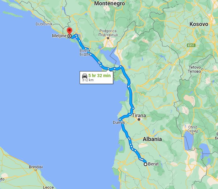 Here on this page we provide the price and details for long distance transfer from well known Berat, located in Albania, to the popular destination, Meljine, located in Montenegro.
