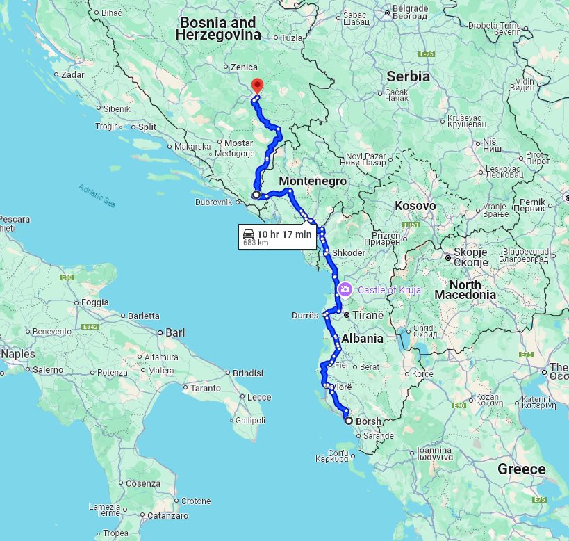 Transfer from Borsh, Albania to Sarajevo, Bosnia and Herzegovina