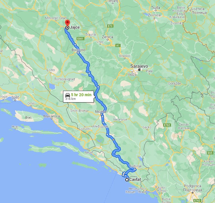 Here on this page we provide the price and details for long distance transfer from well known Cavtat, located in Croatia, to the popular destination, Jajce, located in Bosnia and Herzegovina.