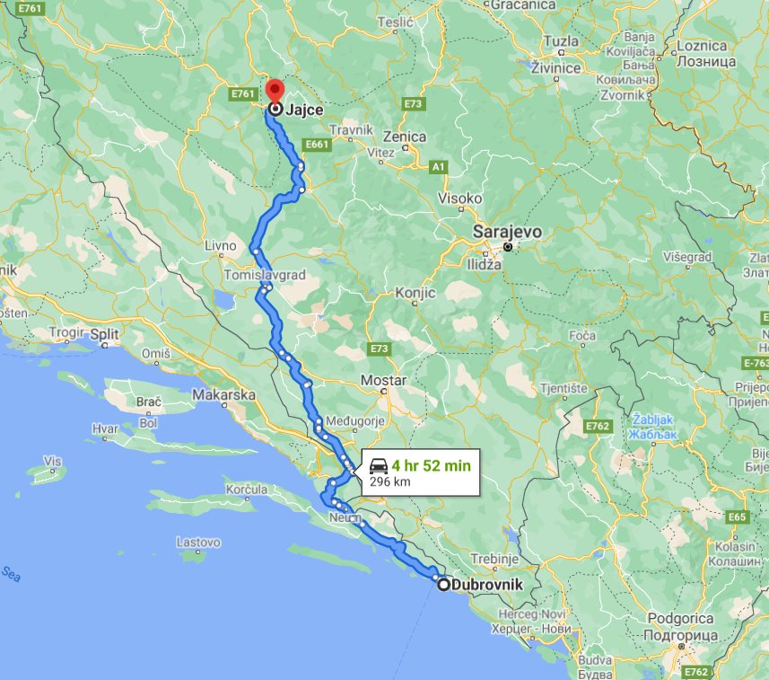 Transfer from Dubrovnik, Croatia to Jajce, Bosnia and Herzegovina