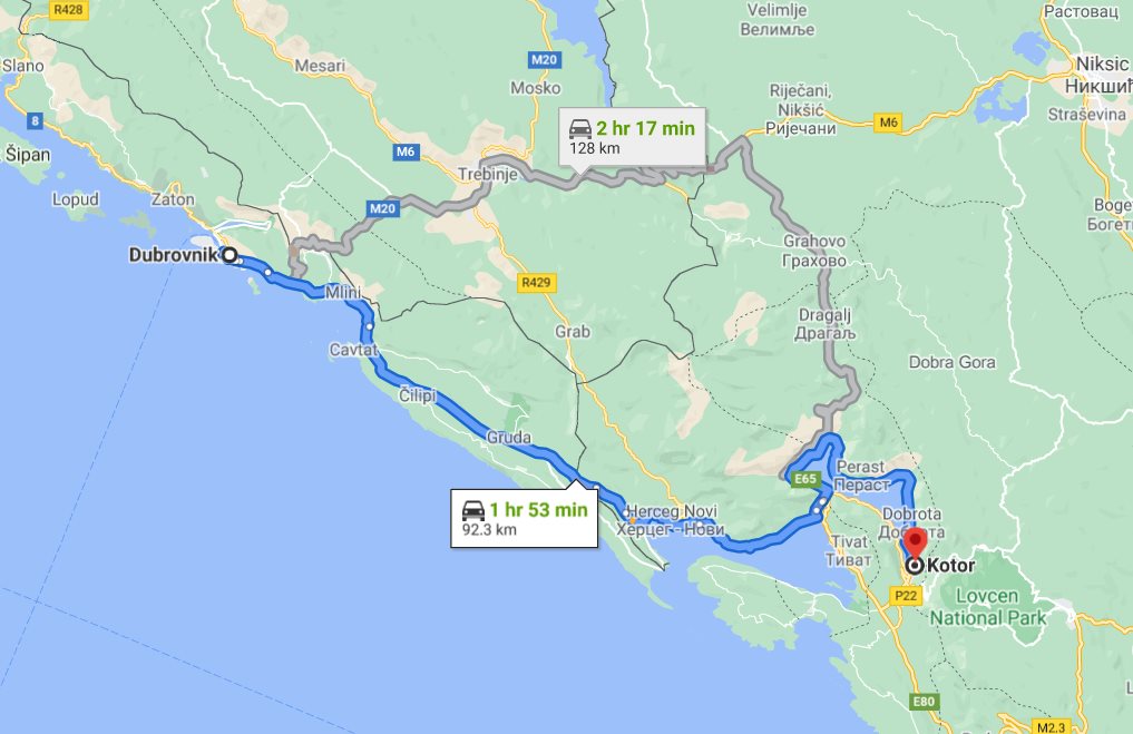 We, at Monterrasol Travel, aside from multi-day small group tours, offering also inter-city and inter-country long distance small group transfers. Such transfers can be extended with one or few (up to 3) sidetrips, by request. Here on this page we provide the price and details for long distance transfer from well known Dubrovnik, located in Croatia, to the popular destination, Kotor, located in Montenegro. The price is for a ride, not per person. The transfer route will not use any highway, and there is no any ferry on the route. The price is also include 20 minutes of waiting, it is apply everywhere except airports. In airports, the price is include 1 hour waiting. If you plan to return on the same day, our driver can bring you back with a 20% discount. Each transfer back is case-by-case and depends on the total distance and waiting time. We use for transfers a classic minivans, with 7 seats for passengers (one in front, 3 on the second row, and another 3 on third row), and trunk can accommodate 2 large suitcases and few handbags. Please be aware: