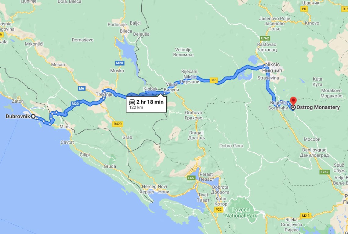 We, at Monterrasol Travel, aside from multi-day small group tours, offering also inter-city and inter-country long distance small group transfers. Such transfers can be extended with one or few (up to 3) sidetrips, by request. Here on this page we provide the price and details for long distance transfer from well known Dubrovnik, located in Croatia, to the popular destination, Ostrog monastery, located in Montenegro. The price is for a ride, not per person. The transfer route will not use any highway, and there is no any ferry on the route. The price is also include 20 minutes of waiting, it is apply everywhere except airports. In airports, the price is include 1 hour waiting. If you plan to return on the same day, our driver can bring you back with a 20% discount. Each transfer back is case-by-case and depends on the total distance and waiting time. We use for transfers a classic minivans, with 7 seats for passengers (one in front, 3 on the second row, and another 3 on third row), and trunk can accommodate 2 large suitcases and few handbags. Please be aware: