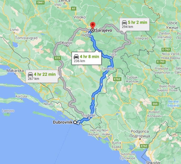 Here on this page we provide the price and details for long distance transfer from well known Dubrovnik, located in Croatia, to the popular destination, Sarajevo, located in Bosnia and Herzegovina.
