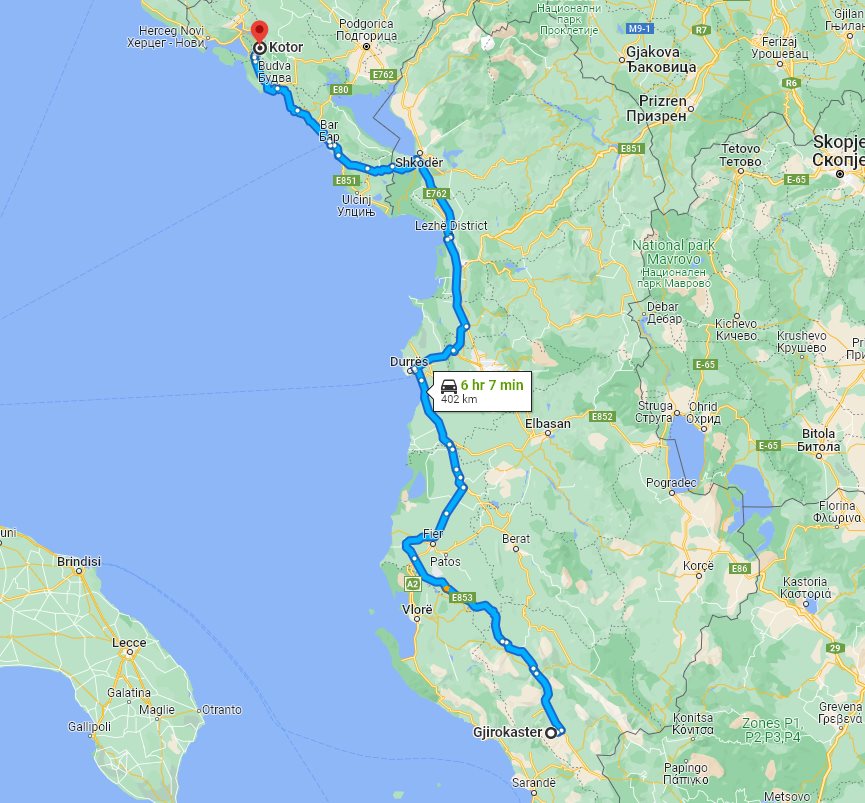 Here on this page we provide the price and details for long distance transfer from well known Gjirokaster (Gjirokastër), located in Albania, to the popular destination, Kotor, located in Montenegro.