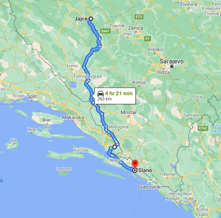 Transfer from Jajce, Bosnia and Herzegovina to Slano, Croatia