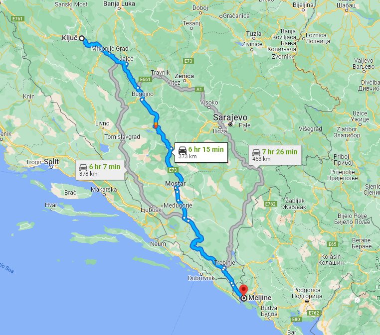 Here on this page we provide the price and details for long distance transfer from well known Kljuc (Ključ), located in Bosnia and Herzegovina, to the popular destination, Meljine, located in Montenegro.