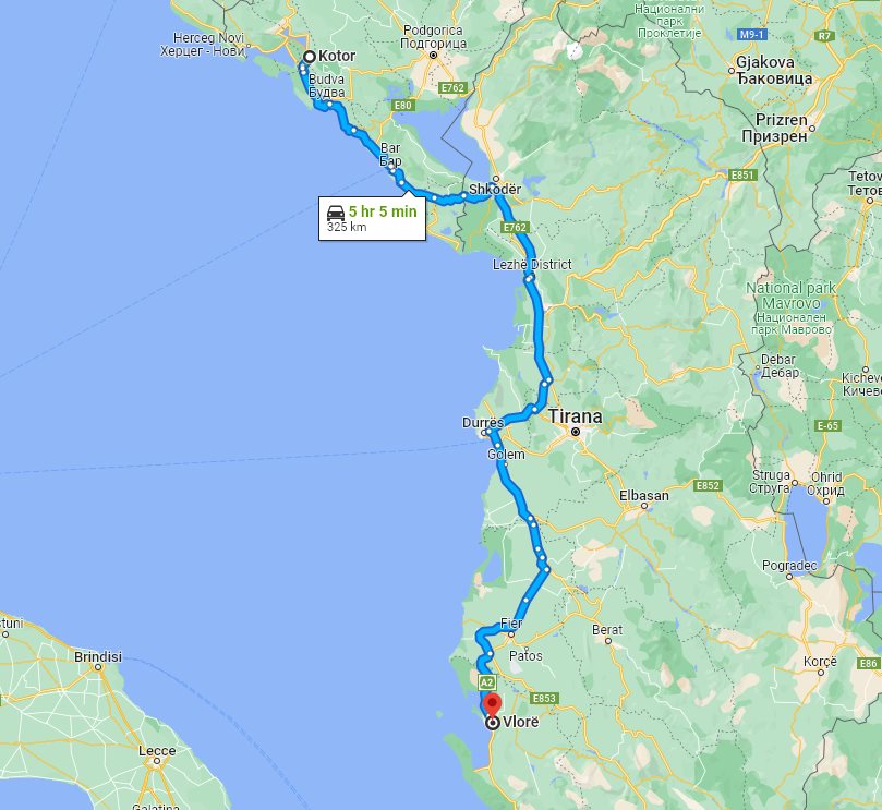 Here on this page we provide the price and details for long distance transfer from well known Kotor, located in Montenegro, to the popular destination, Vlore (Vlorë), located in Albania.