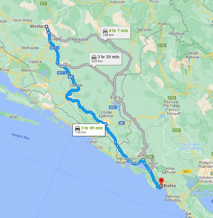 Here on this page we provide the price and details for long distance transfer from well known Mostar, located in Bosnia and Herzegovina, to the popular destination, Budva, located in Montenegro.