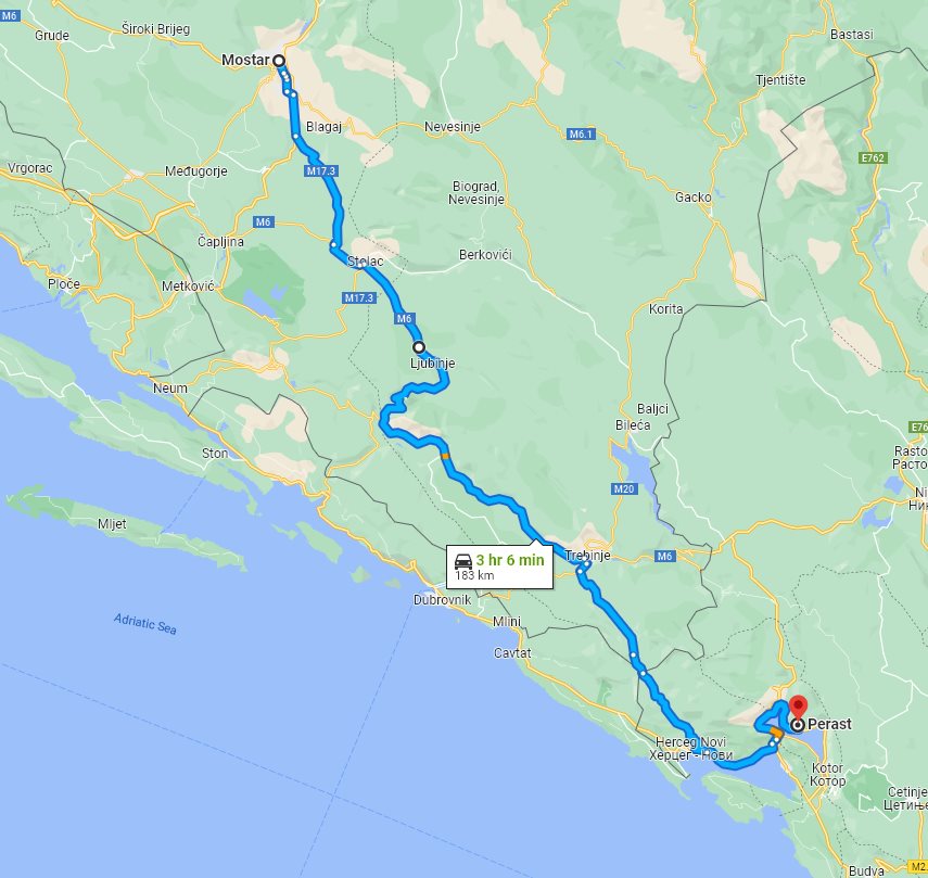 Transfer from Mostar, Bosnia and Herzegovina to Perast, Montenegro