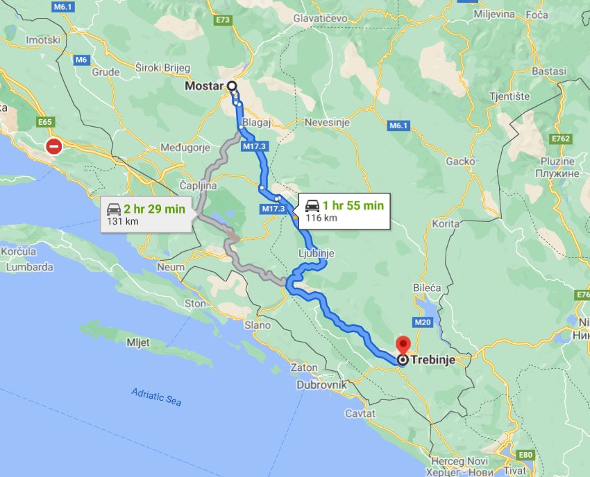 Transfer from Mostar, Bosnia and Herzegovina to Trebinje, Bosnia and Herzegovina
