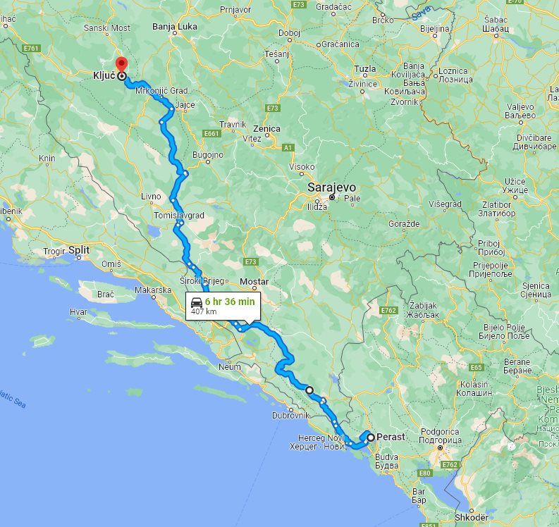 Here on this page we provide the price and details for long distance transfer from well known Perast, located in Montenegro, to the popular destination, Kljuc (Ključ), located in Bosnia and Herzegovina.