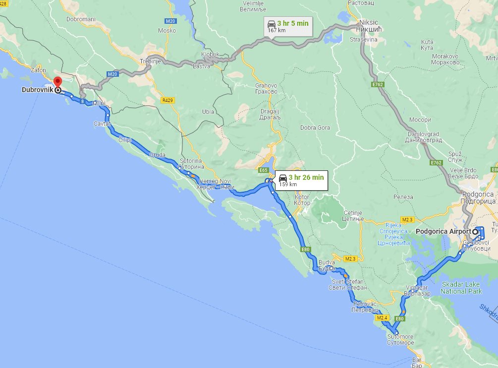 Transfer from Podgorica airport Golubovci, Montenegro to Dubrovnik, Croatiatransfer ID: #692