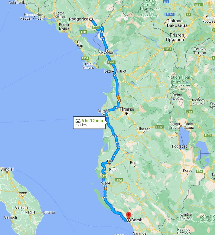 Here on this page we provide the price and details for long distance transfer from well known Podgorica, located in Montenegro, to the popular destination, Borsh, located in Albania.
