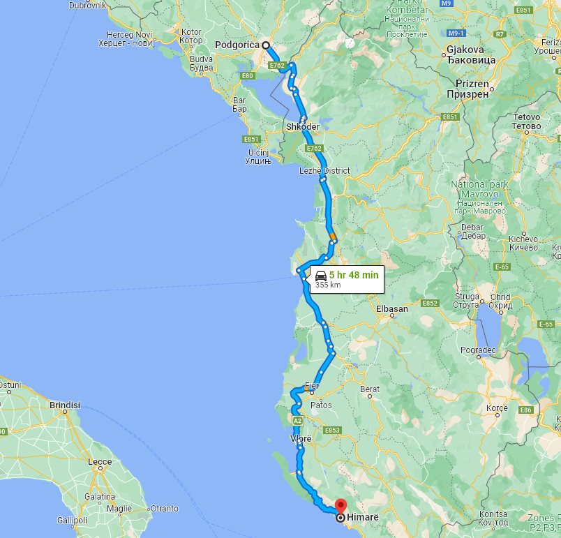 Transfer from Podgorica, Montenegro to Himare (Himarë), Albania