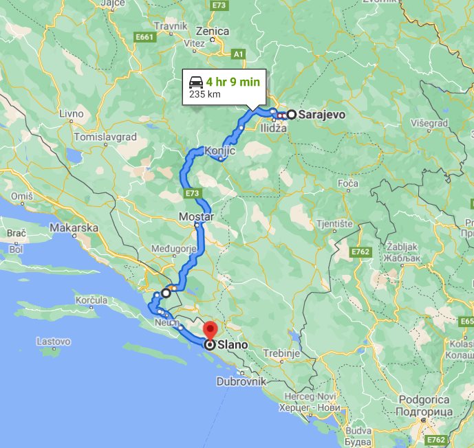 Transfer from Sarajevo, Bosnia and Herzegovina to Slano, Croatia