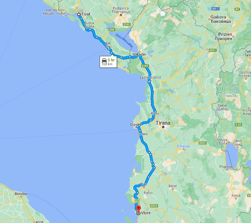 Here on this page we provide the price and details for long distance transfer from well known Tivat, located in Montenegro, to the popular destination, Vlore (Vlorë), located in Albania.