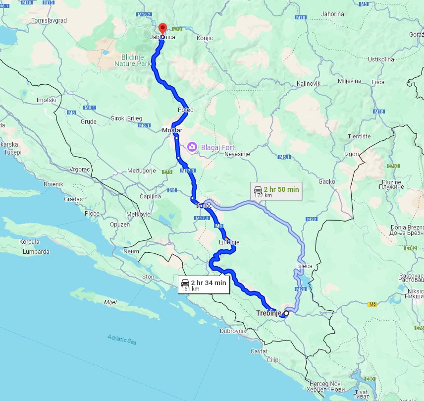 Here on this page we provide the price and details for long distance transfer in Bosnia and Herzegovina, from well known Trebinje to Jablanica.