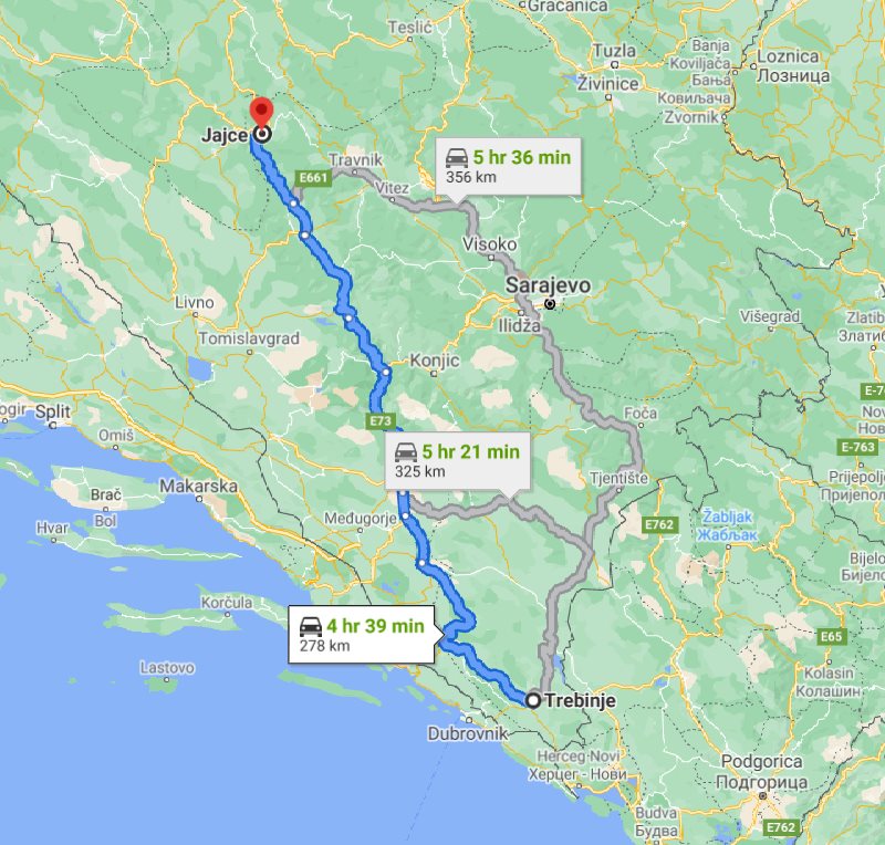 Transfer from Trebinje, Bosnia and Herzegovina to Jajce, Bosnia and Herzegovina