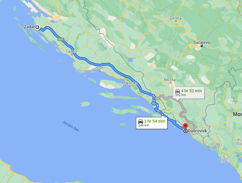 Transfer from Zadar, Croatia to Dubrovnik, Croatia